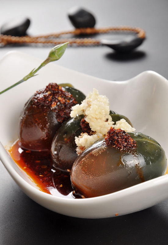 用刀切松花蛋,蛋黄会粘在刀上?如果把刀用开水烫热,就能切得整齐漂亮,也可用丝线将松花蛋割开,既均匀又不沾蛋黄。